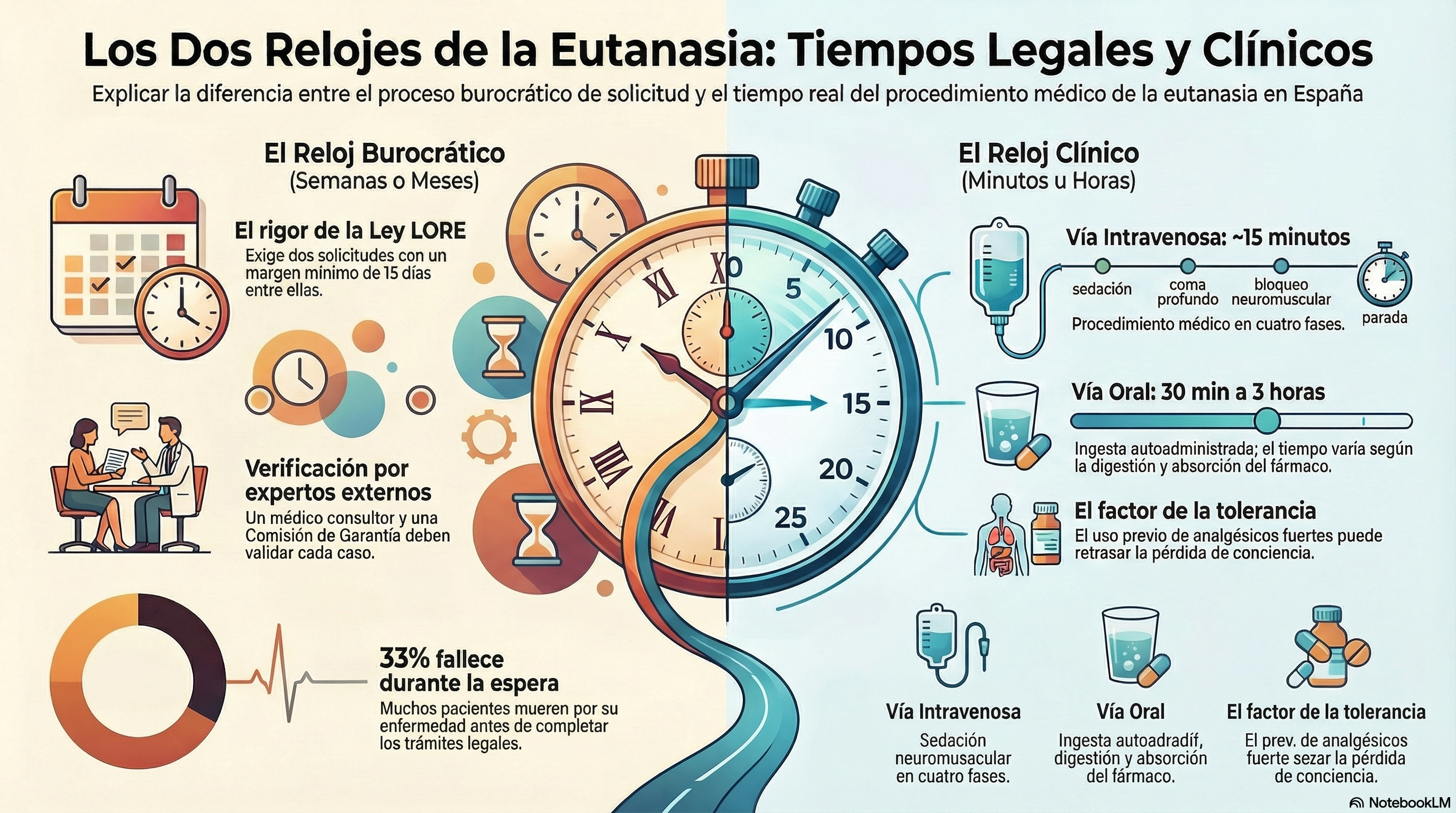 El tiempo que se tarda en morir por eutanasia es una moneda de dos caras. La cara legal es un camino deliberadamente lento, estructurado en semanas de reflexiones y aprobaciones burocráticas que, lamentablemente, algunos pacientes no logran completar debido a lo avanzado de su enfermedad.