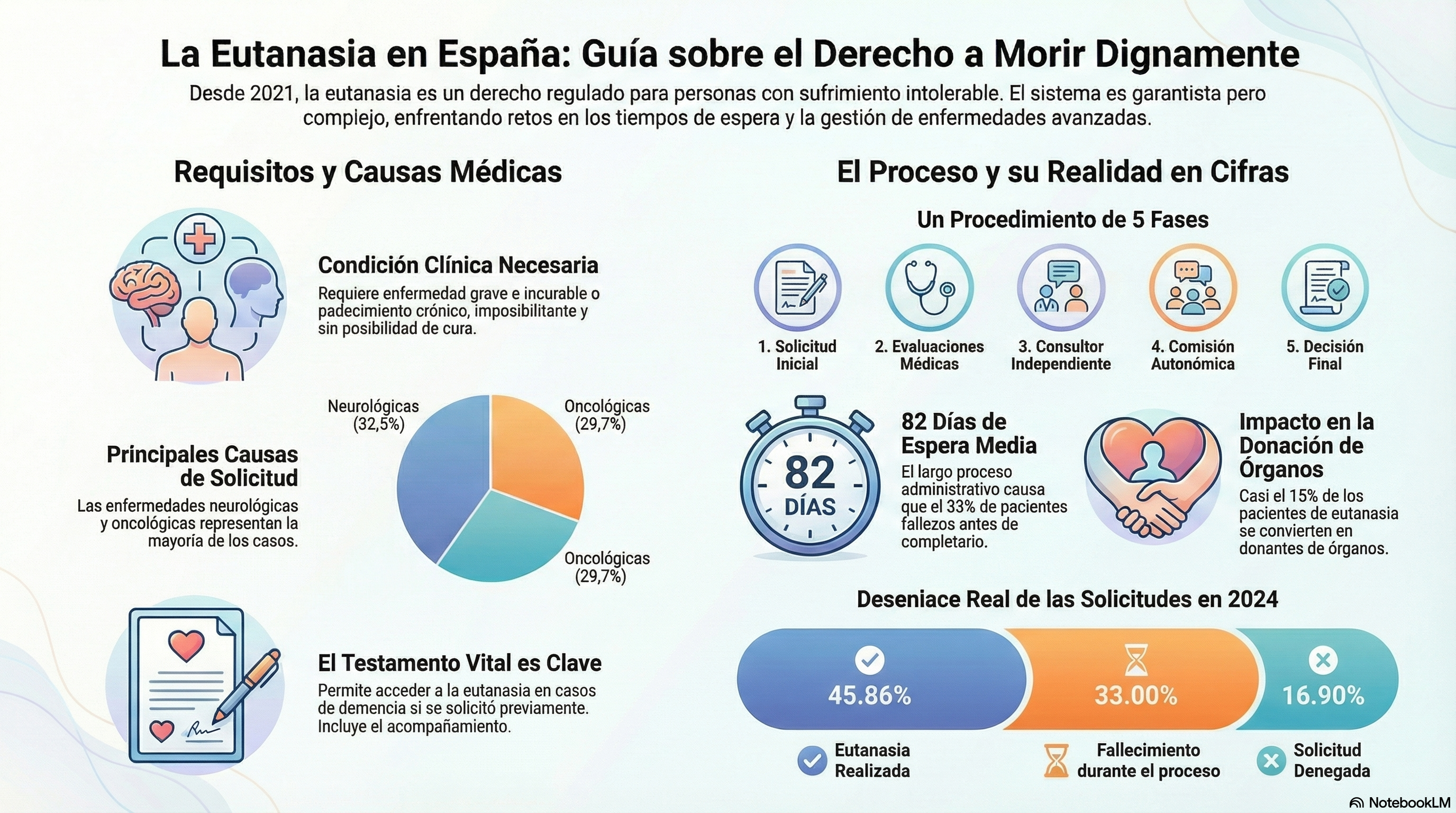 Un aspecto importante es que en España no es obligatorio estar en fase terminal. A diferencia de otros países, no se exige un pronóstico de vida concreto (como seis meses), sino una situación clínica irreversible .
